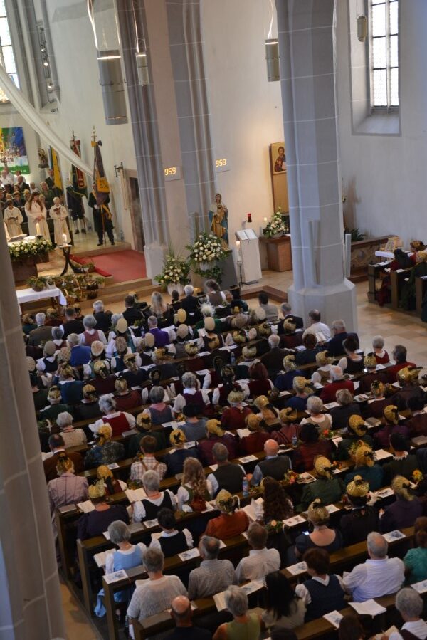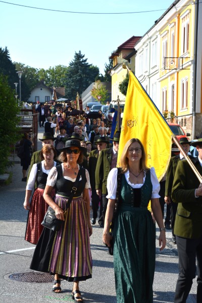 Den Festgottesdienst mit anschließender Kräutersegnung zelebrierte Pfarrer Helmut Prader. Die musikalische Umrahmung des Festgottesdienstes gestalteten ein Harmonikaensemble unter der Leitung von Ingrid Nagl-Strasser, der Kirchenchor Haag unter der Leitung von Sabine Stollnberger und eine Bläsergruppe unter der Leitung von Ewald Huber, der auch die Orgel spielte. Im Rahmen der Wallfahrt überreichte Daniela Heinzl, Obfrau der Mostviertler Goldhauben- und Trachtengruppen und Mitglied im Vorstand des Landesverbands für regionale Kulturarbeit Volkskultur Niederösterreich, Ehrenzeichen des Verbands an neun verdiente Mitglieder, darunter Obfrau Maria Sturm und acht Fahnenträger aus den Reihen der Goldhauben- und Trachtengruppen des Mostviertels.