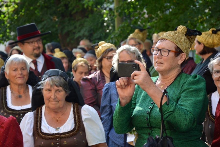 Die Besucherinnen und Besucher waren von dem Festzug, den festlichen Trachten und den goldglänzenden Kopfbedeckungen begeistert. Harald Froschauer, Geschäftsführer der Volkskultur Niederösterreich konnte als Ehrengäste unter anderen Landtagsabgeordneten Anton Kasser, in Vertretung der Landeshauptfrau Johanna Mikl-Leitner, begrüßen, weiters den Bürgermeister der Stadt Haag Lukas Michlmayr, den langjährigen Geschäftsführer der Volkskultur Niederösterreich und Ehrenringträger des Verbands Edgar Niemeczek, Ehrenobfrau der Goldhaubengruppen und ebenfalls Ehrenringträgerin Grete Hammel, Rupert Klein, den Präsidenten des Bundes der Österreichischen Trachten- und Heimatvereine, Karl Gastecker vom Landesverband Volkskultur Niederösterreich sowie Agnes Luginger, Trachtenreferentin für den Lungau, und Barbara Wimmer, Trachtenreferentin für den Pinzgau, begrüßen.