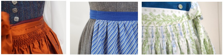 Bei den Dirndln, wie wir sie kennen und wie sie heute angeboten werden, gehört die Schürze – die Dirndlbluse übrigens auch – dazu. Sie ist Schmuck und Dekoration.